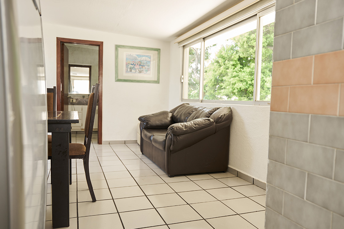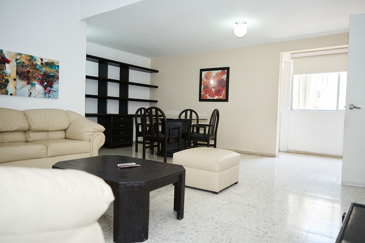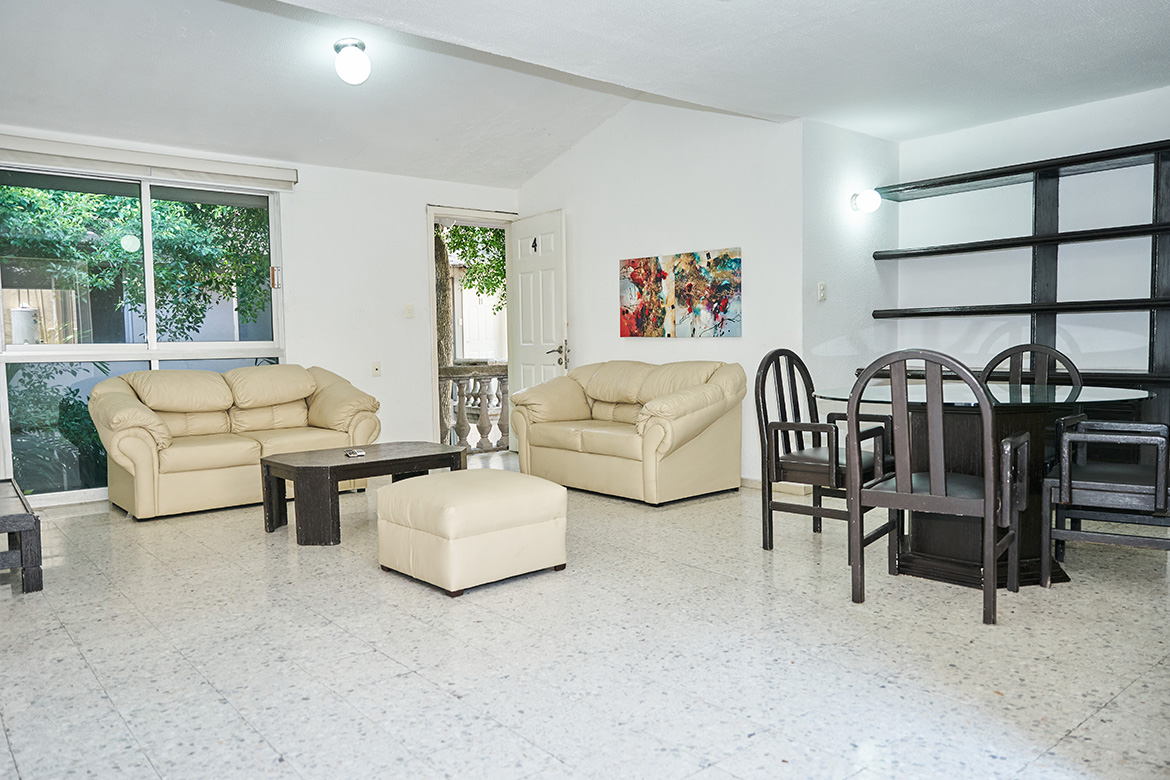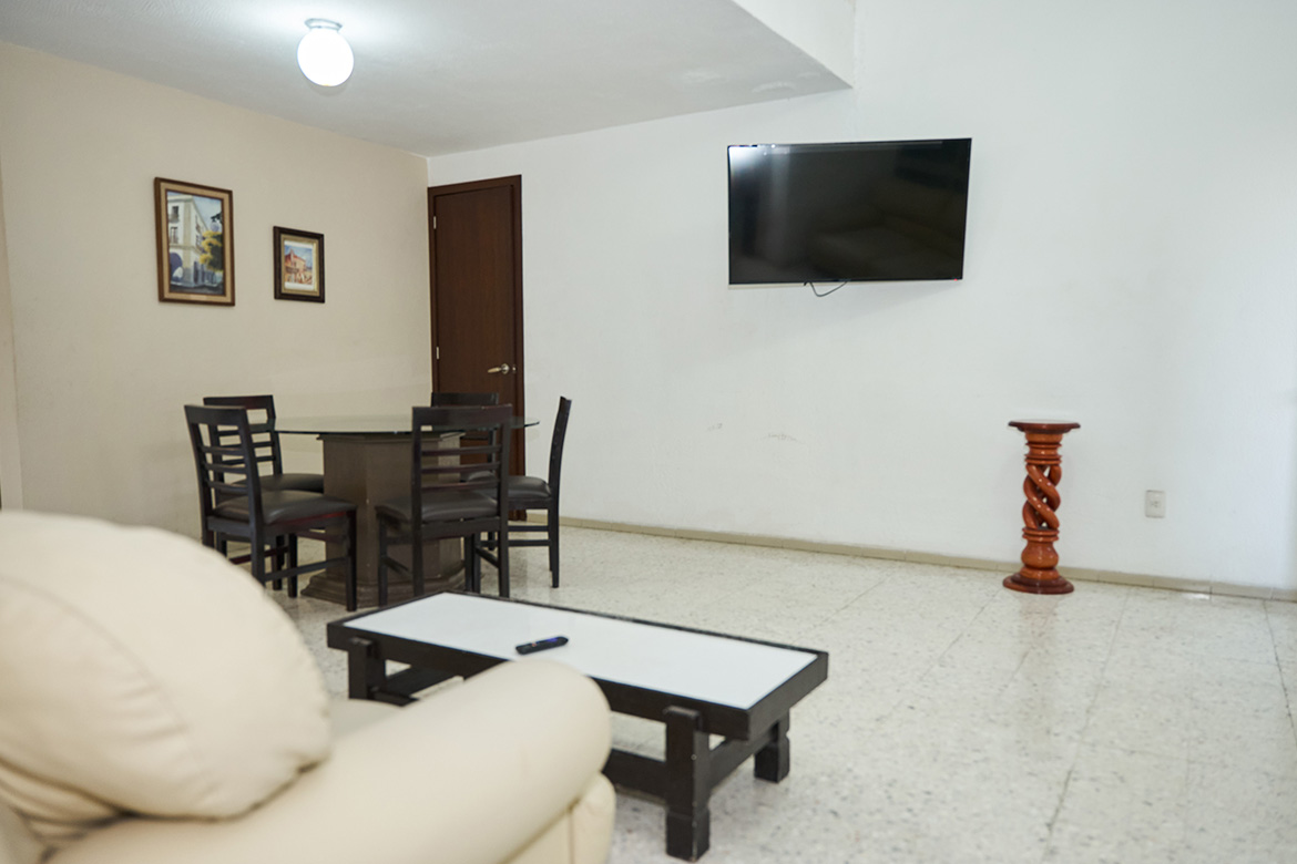 Sala con sofá y televisión por cable para que disfrutes momentos de descanso y entretenimiento.